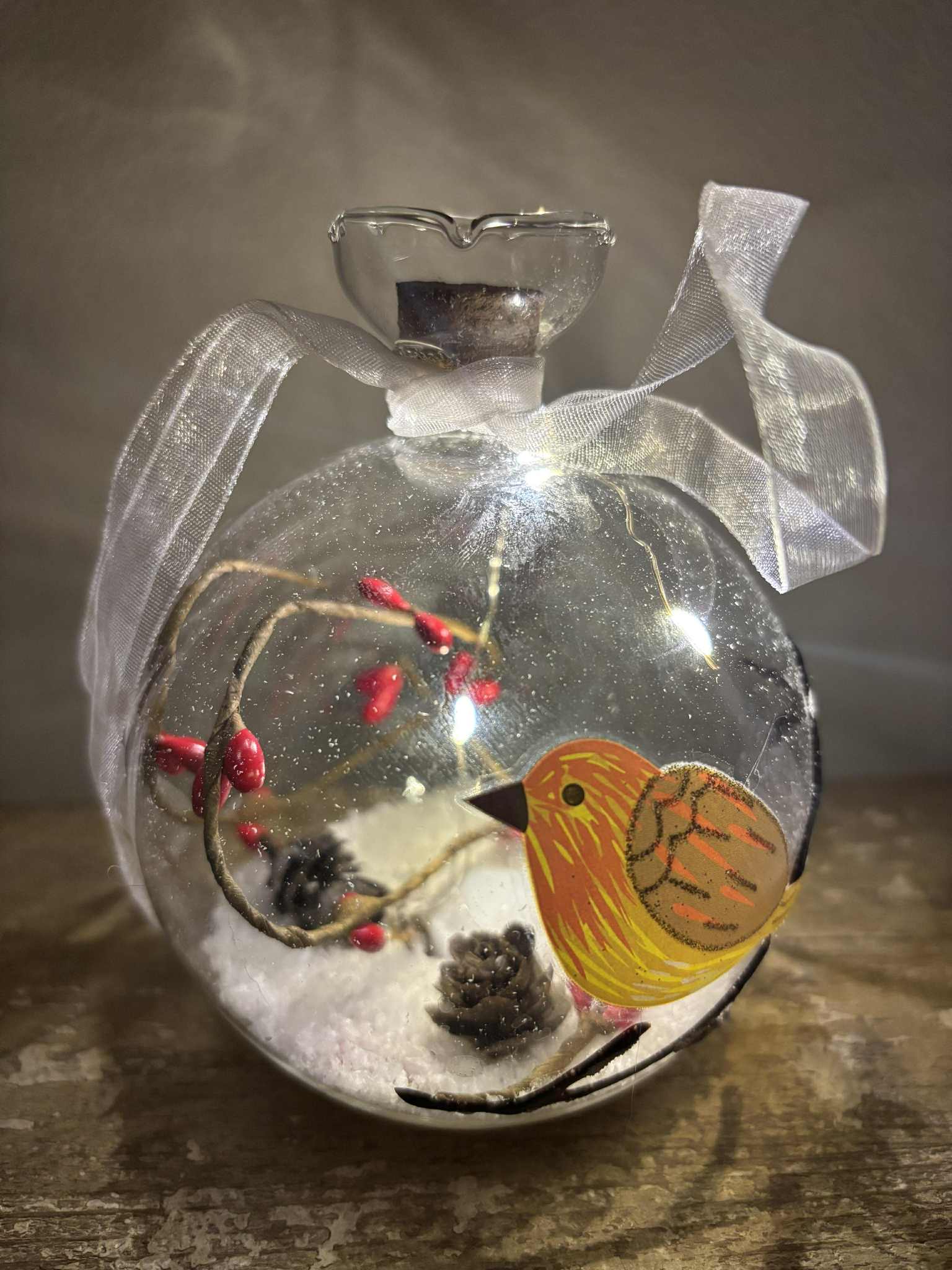 Ævintýralega falleg jólakúla úr gleri með ledljósi