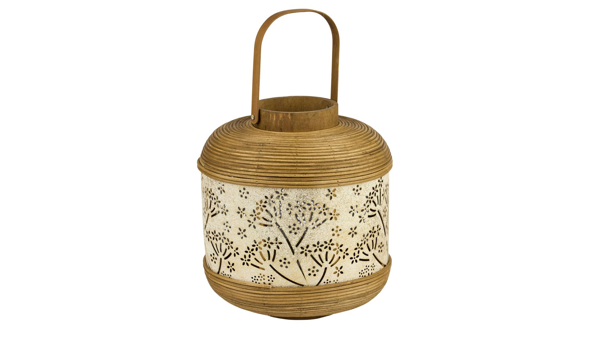Þessi fallega lukt er úr Bambus og kremuðu og gylltu járni