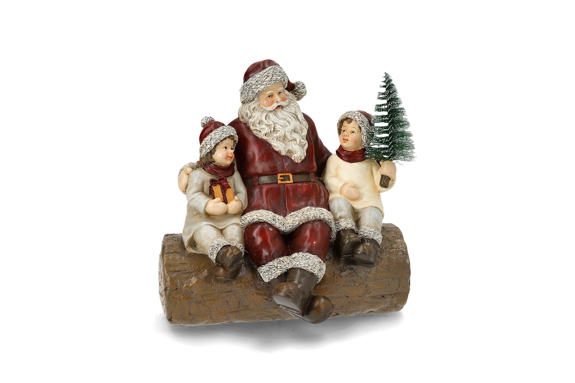 Falleg Stytta Jólasveinn og börn sem sitja á tréstubb